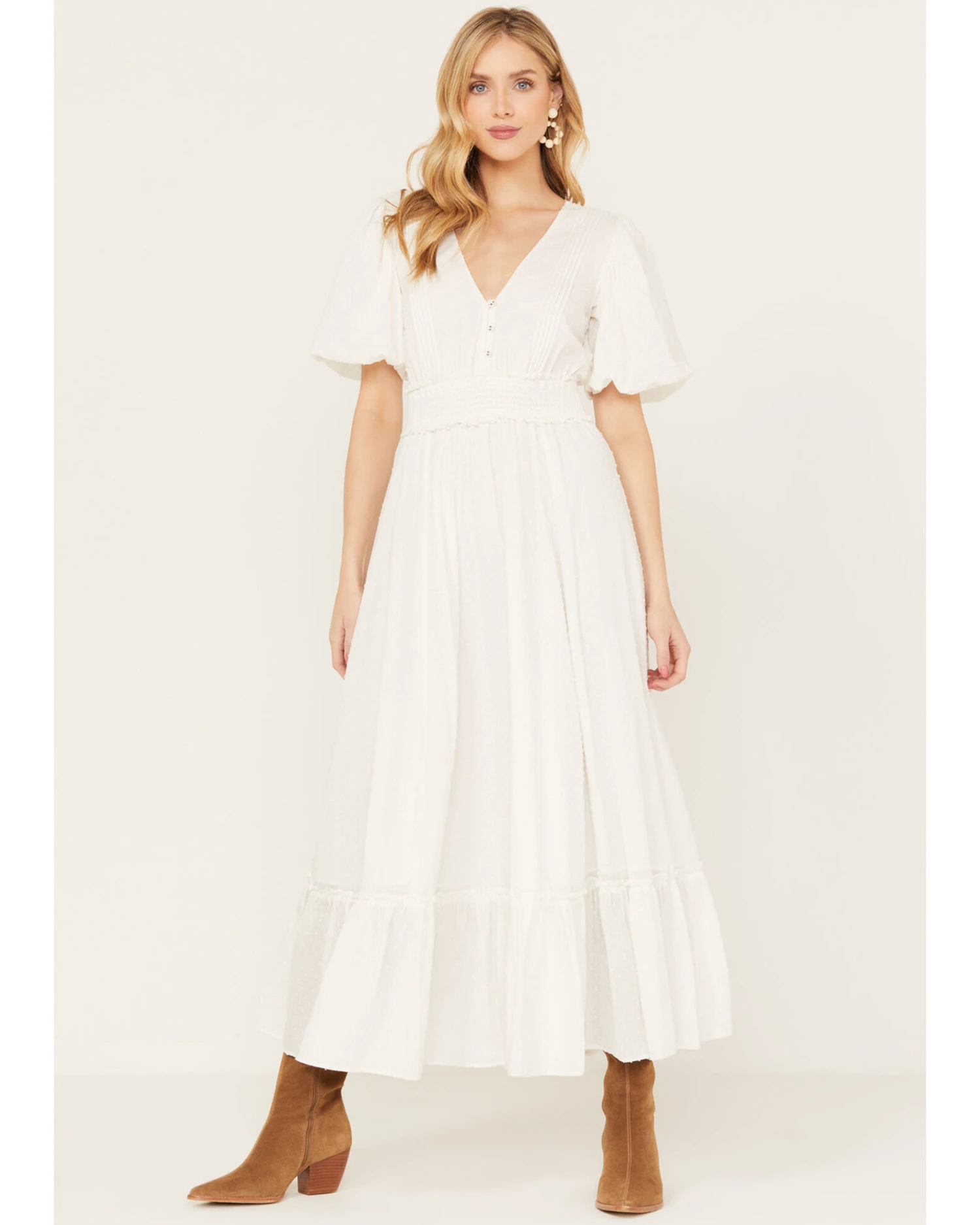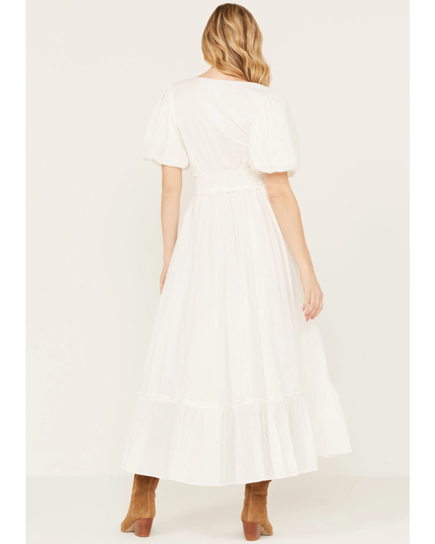 - Solid ivory with swiss dot design throughout