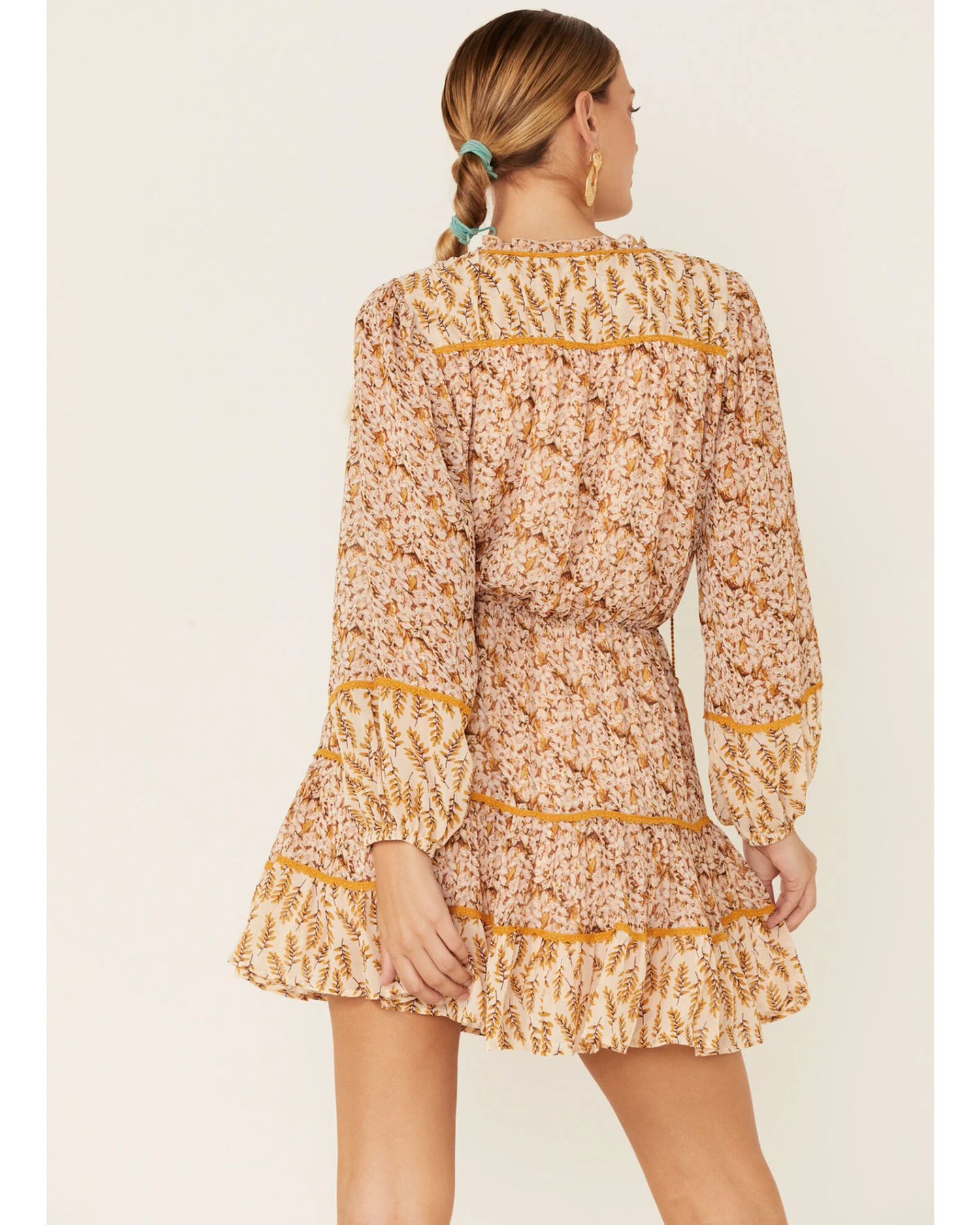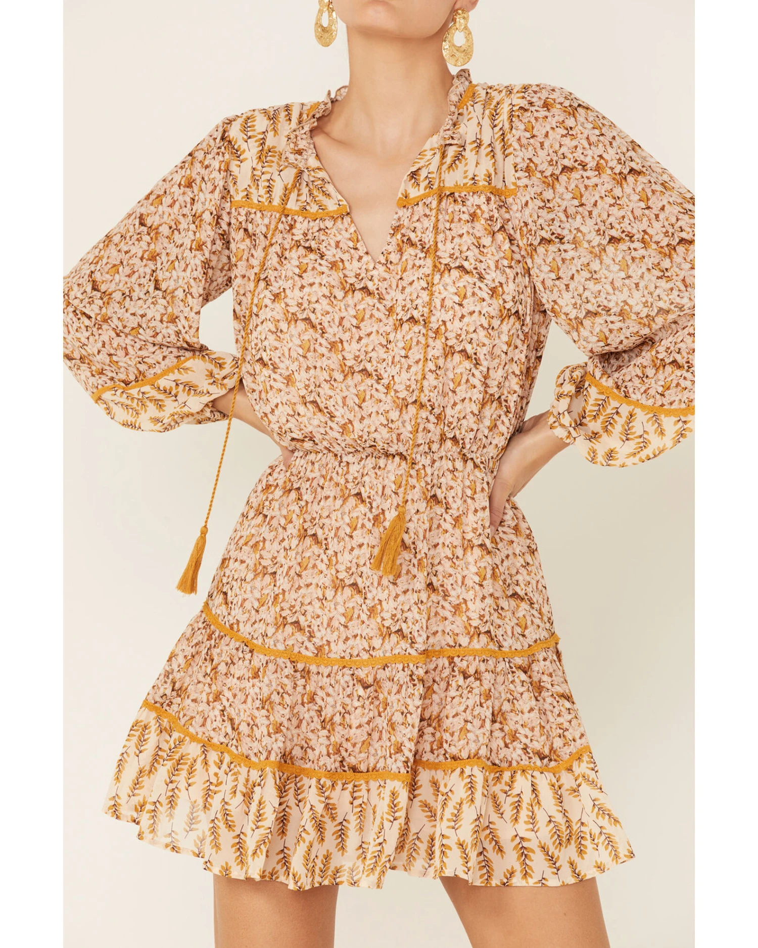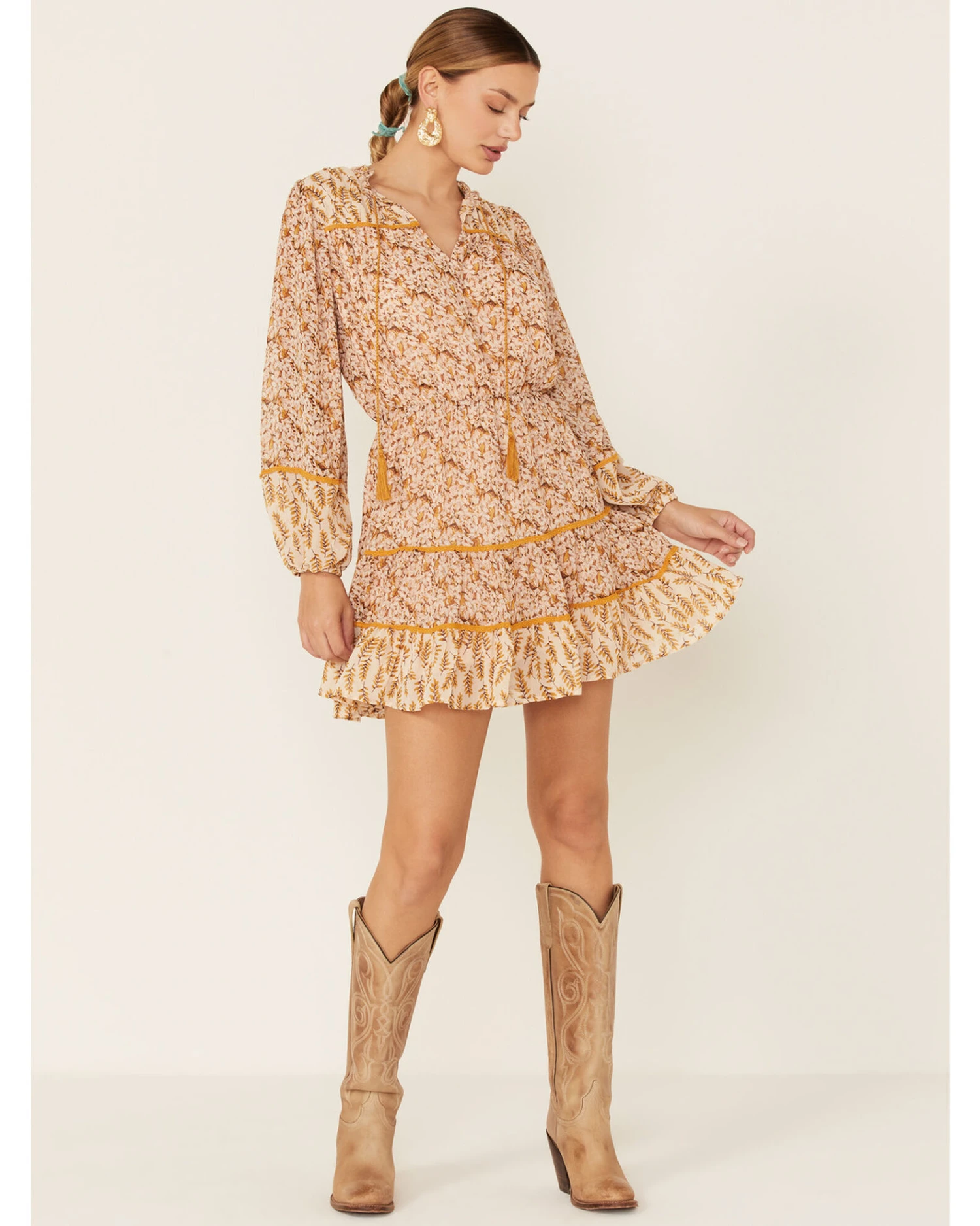 Miss Me Women’s Ditsy Floral Long Sleeve Peasant Mini Dress