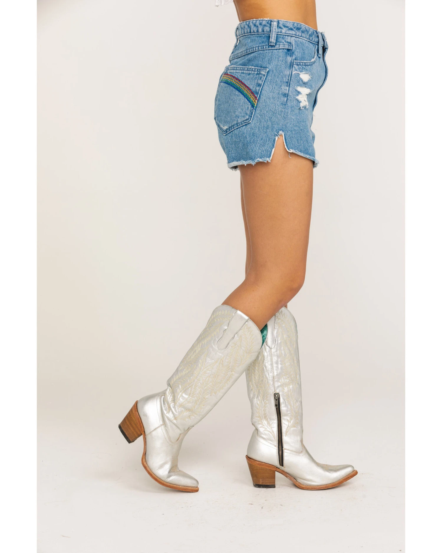 Show Me Your Mumu Women’s Arizona Delta Rainbow High Waisted Shorts