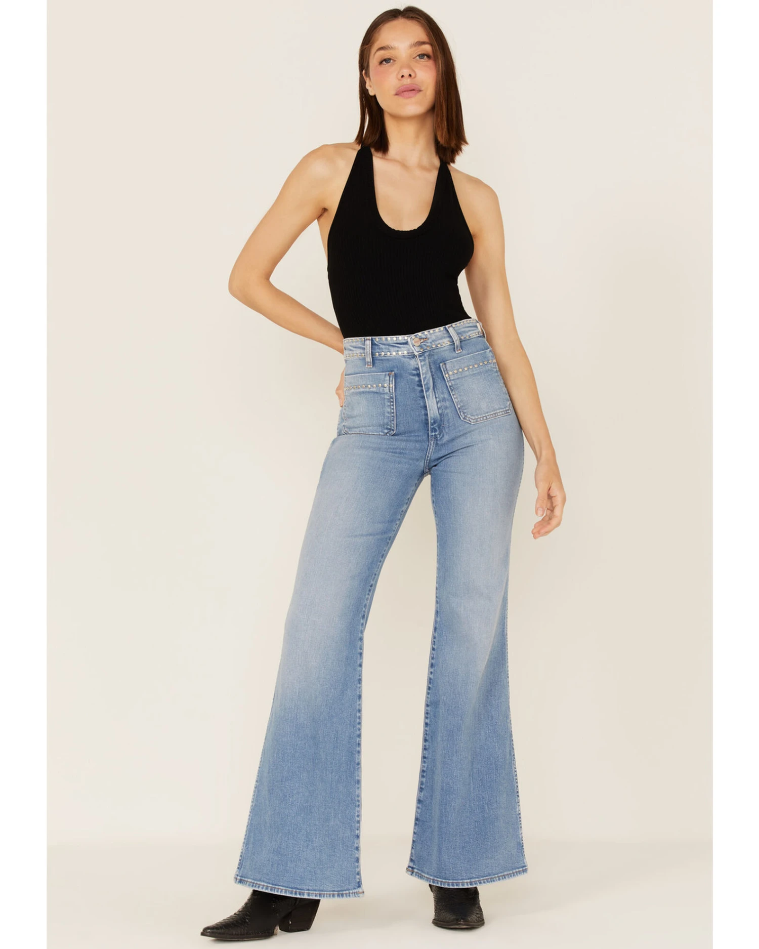 Wrangler X Fender Women’s Wanderer Cowgirl Rockstar Medium Wash High Rise Flare Jeans