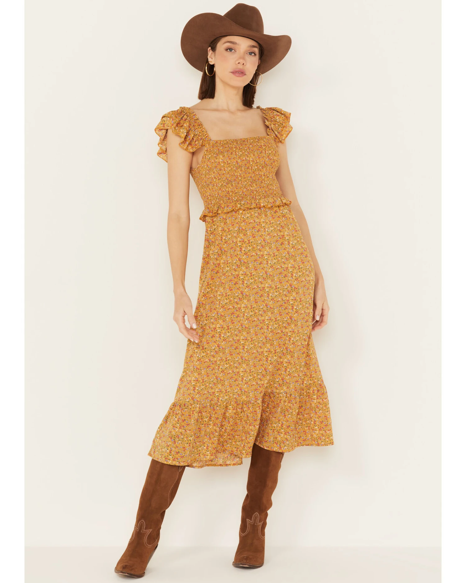Yura Women’s Ditsy Floral Ruffle Sleeveless Midi Dress
